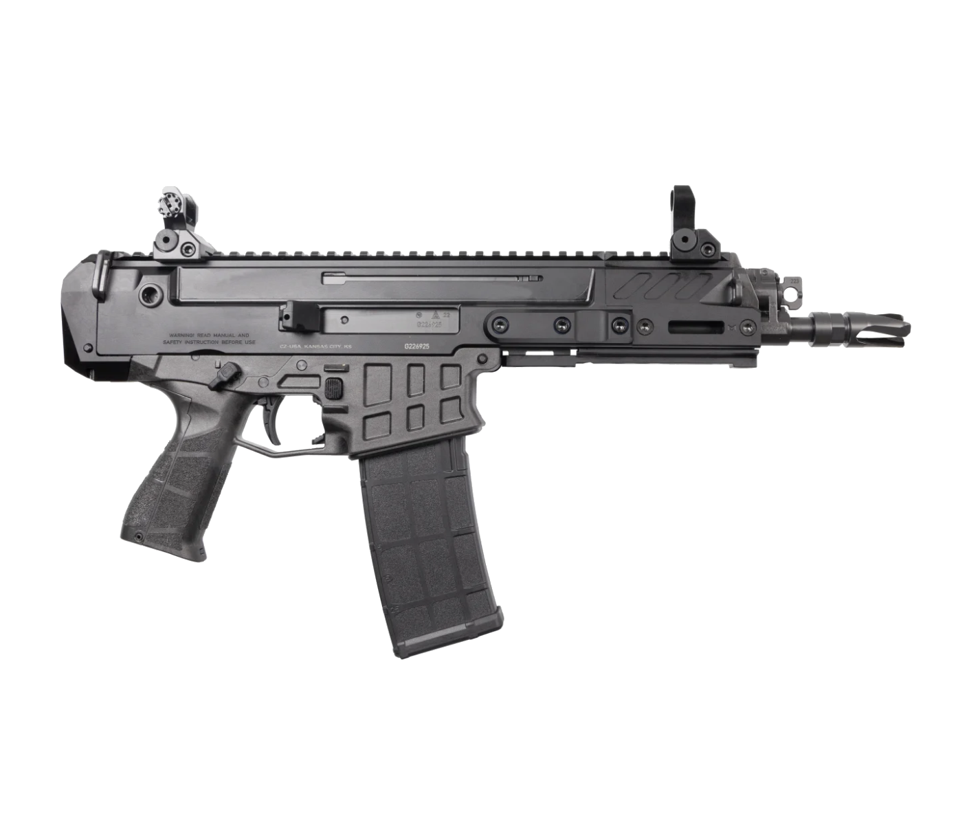 In pistol form, the Bren 2 Ms comes with a flush rear plate that has the provision for attaching a AR-style buffer tube for the installation of an arm brace, cheek rest or similar pistol stabilizing device. For those who wish to SBR, a Carbine buffer tube and stock can be installed or the entire rear plate can be removed and replaced with a factory folding/adjustable stock.